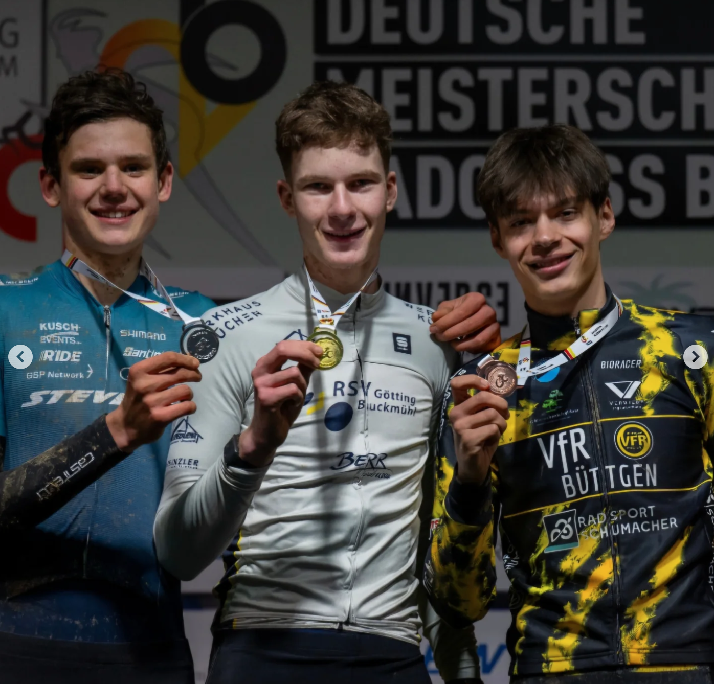 Der neue Deutsche Meister in der U23 sowie das gesamte Podium der U23 kommen aus Hamburg: Eike Behrens konnte sich bereits frühzeitig von seiner Konkurrenz absetzen. Max Oertzen und Silas Kuschla folgten teils ins Sichtweite zu Platz 1, konnten final jedoch nicht mehr aufschließen. Im Zielsprint sichert sich Max Silber, Silas Rang 3. Wir gratulieren dem Gewinner des Trikots Eike Behrens.